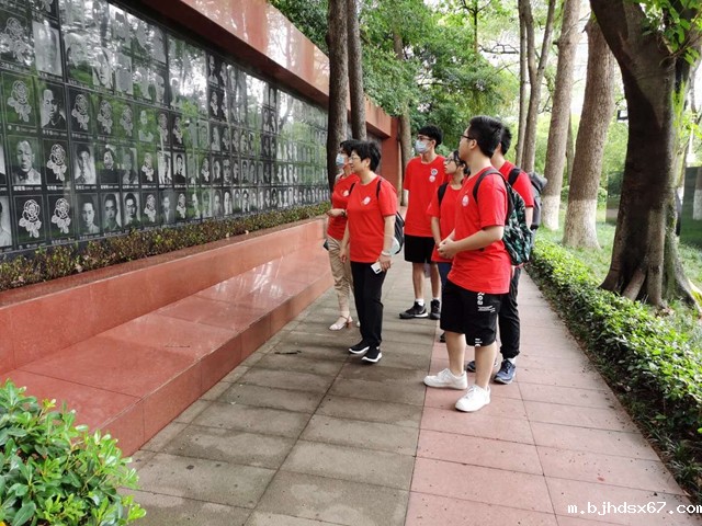 (队员们参观“1127死难烈士纪念碑”照片墙)