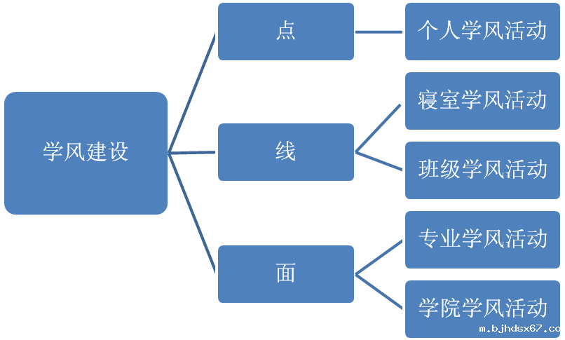 开展学风班级建设,强化班级管理,以良好班级促进良好学风的形成,从学院渗透至班级,从班级深入至个人的规模化教育,通过个体带动集体,集体帮助个体的方式,增强班级荣誉感和自豪感,以此引出认真作为的态度,从而提升班级整体学习水平以及班级凝聚力。